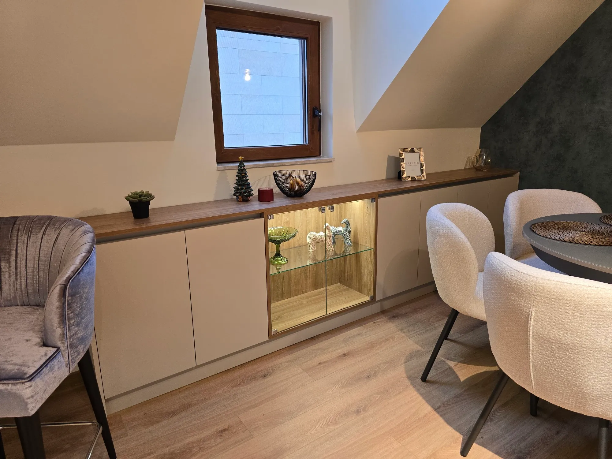 Работим с висококачествени материали — ПДЧ, МДФ, естествен фурнир или боя. Всеки елемент се изработва прецизно за безупречен резултат.