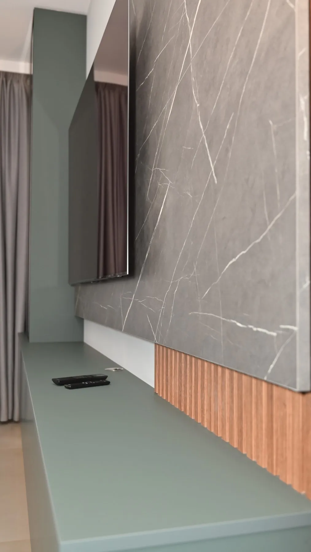 ТВ шкафове и мултимедийни мебели по поръчка, съобразени с интериора на дневната. Функционални решения с място за техника, кабели и съхранение.