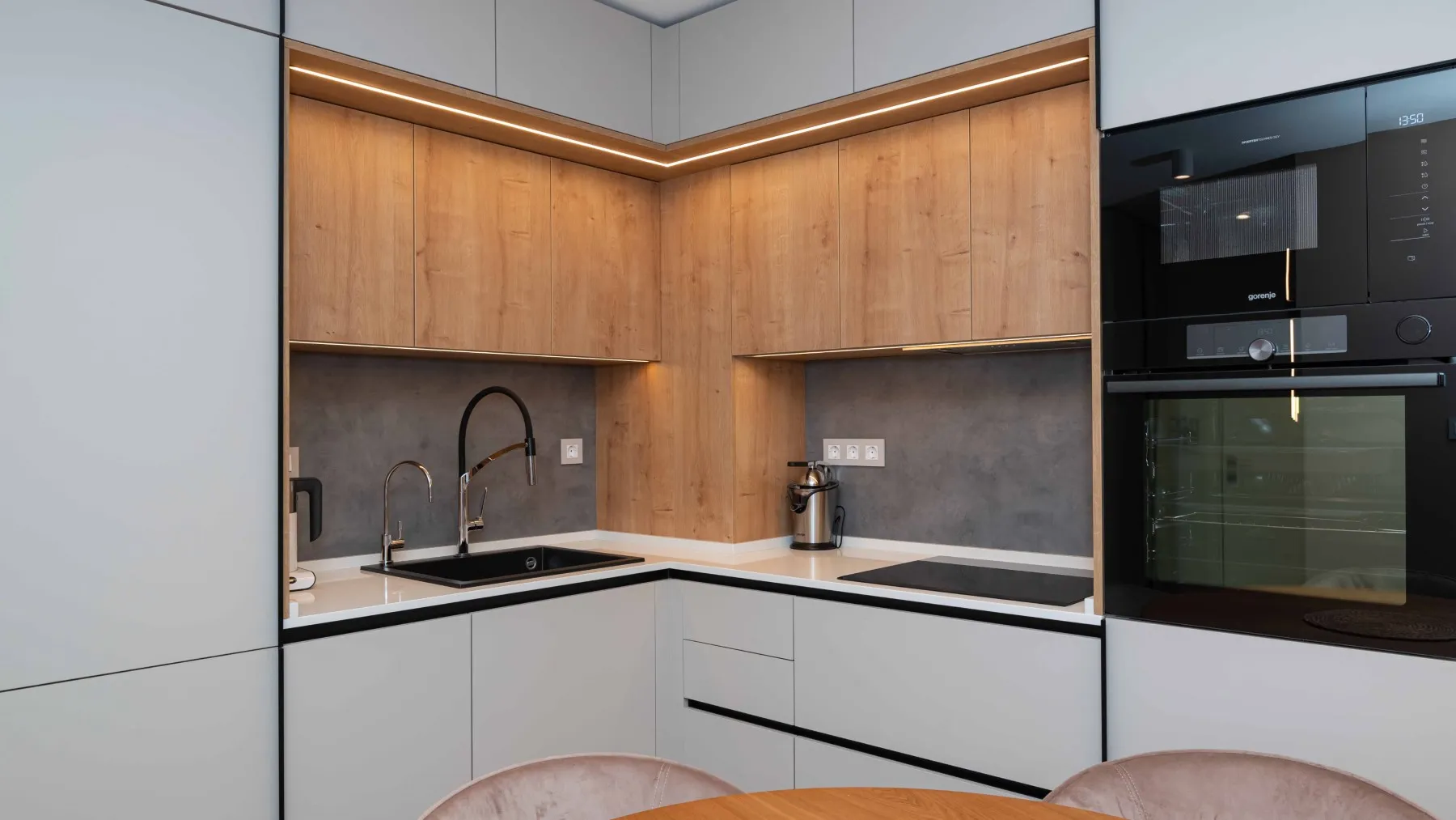 Благодарение на равната си структура, МДФ е идеален за фрезовки, детайли и прецизни кантове, което гарантира качествен завършек и дълготрайност на кухнята при ежедневна употреба.